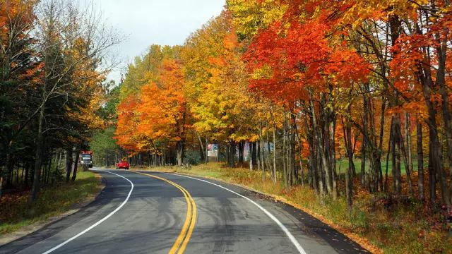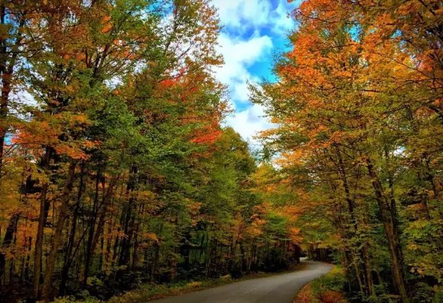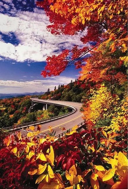 晴朗的秋日,駕車自由馳騁在這條景致極美的公路上,仿佛是那片片楓葉在為你帶路~一路在這樣的角色美景中穿行,怎麼不叫人心醉沈迷?!