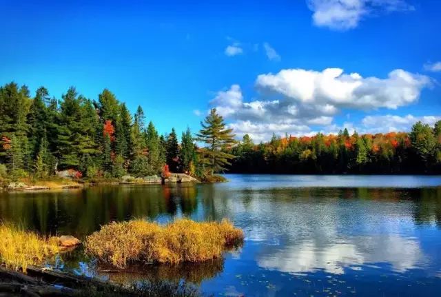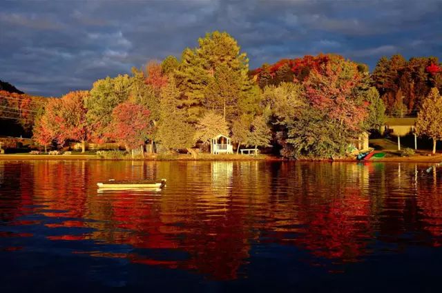 當這些如馬賽克般紅的、黃的、橘紅的、金黃的色彩掩映在碧水藍天之間,你會驚嘆於造物主的巧奪天工。美景如畫,說的應該就是彼時的加拿大。