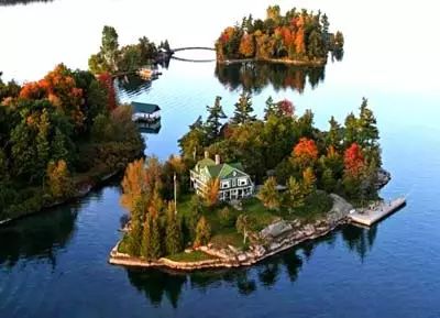 在加拿大的渥太華西南200多公裏的金斯頓附近,有一個千島湖。它是大冰川時期的產物,與大西洋相通,共有大小島嶼1865個。