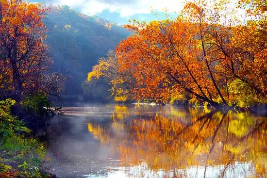 9月中旬,漆樹、黃楊、山毛櫸等率先以深紅、鵝黃拉開了秋的序幕;隨後,糖楓、紅楓、西克莫楓等上百種楓樹也慢慢由黃色、橙色轉變成紅色,與交織其中的綠松、杉樹共同譜寫出秋的主旋律。