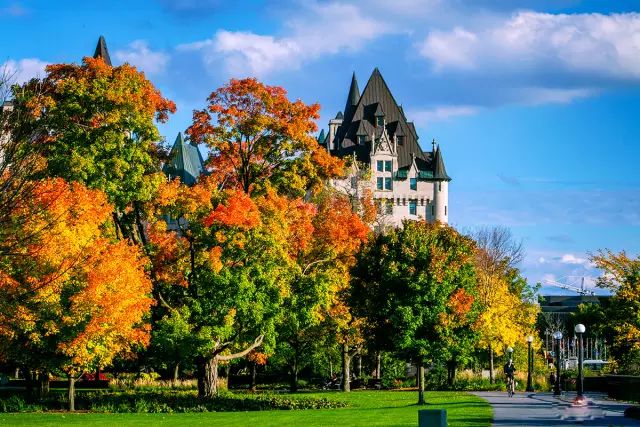 從9月底開始,如北京的香山一樣,渥太華加蒂諾山(Gatineau Hills)呈現一派五彩斑斕的景象。楓葉是加拿大的象征,隨著天氣的降溫,從裏多運河到加蒂諾山脈,數百萬株紅色、橙色、金色的楓葉延綿不絕、絢爛奪目。