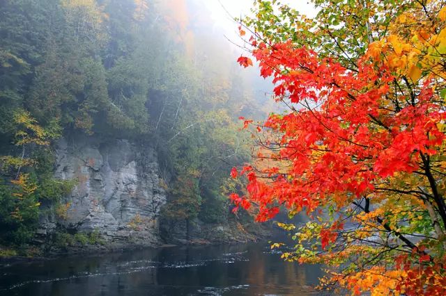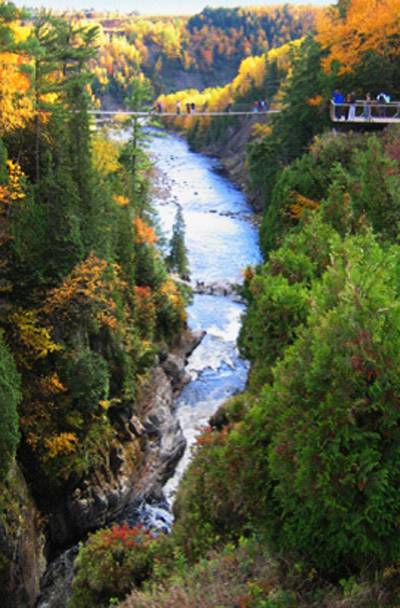 每到秋季,由於峽谷內的溫差將峽谷中的楓葉由低到高變成不同的顏色,漫山遍野的五顏六色的楓葉,將谷底、山腰間和山頂完全覆蓋,層層美景,美不勝收,被人們譽為魁北克的“楓”景之最。
